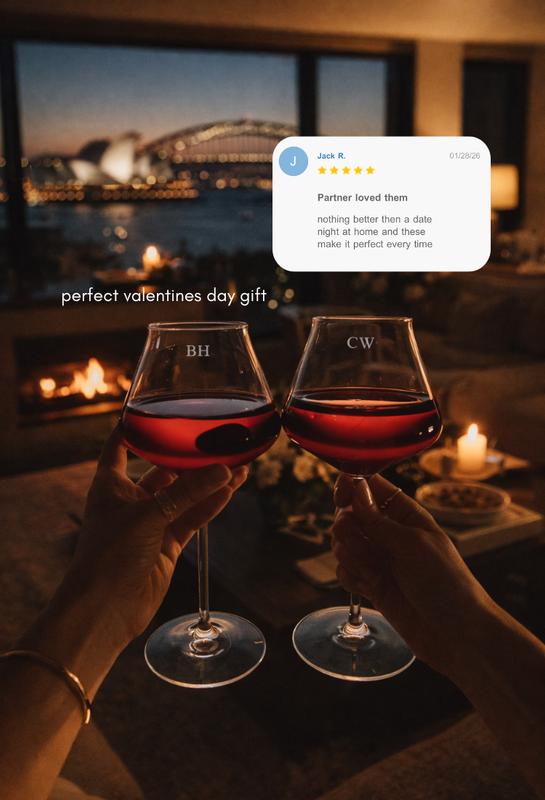 "This personalised glass set took my Valentines Day to a whole new level...It's not just a gift; it's an experience. My partner loved it, and we still use them. Trust me on this one, it's not just about the glasses; it's about the moments you create with them. Cheers to love and good choices!"