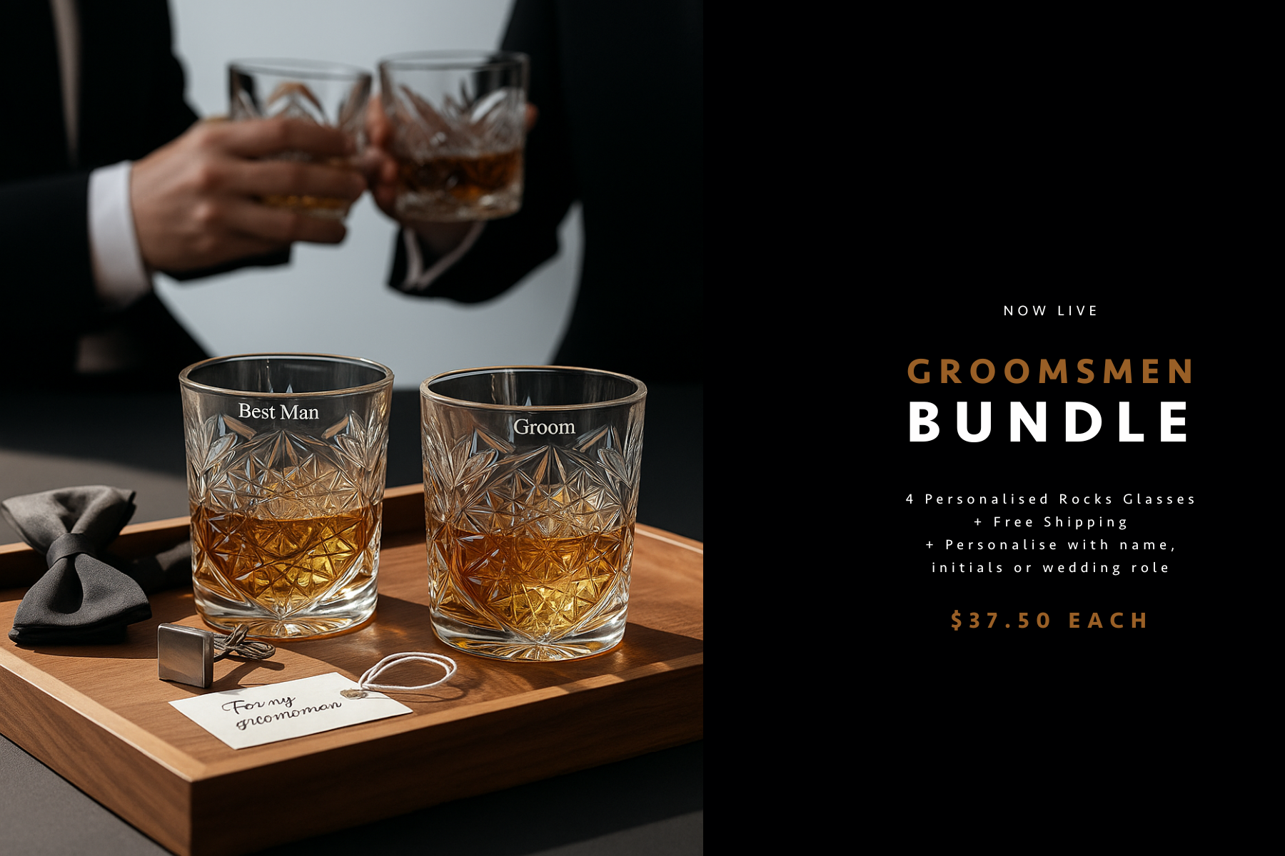 Perfect for Groomsmen, Best Man, Father of the Bride / Groom — one bundle, four incredible keepsakes.